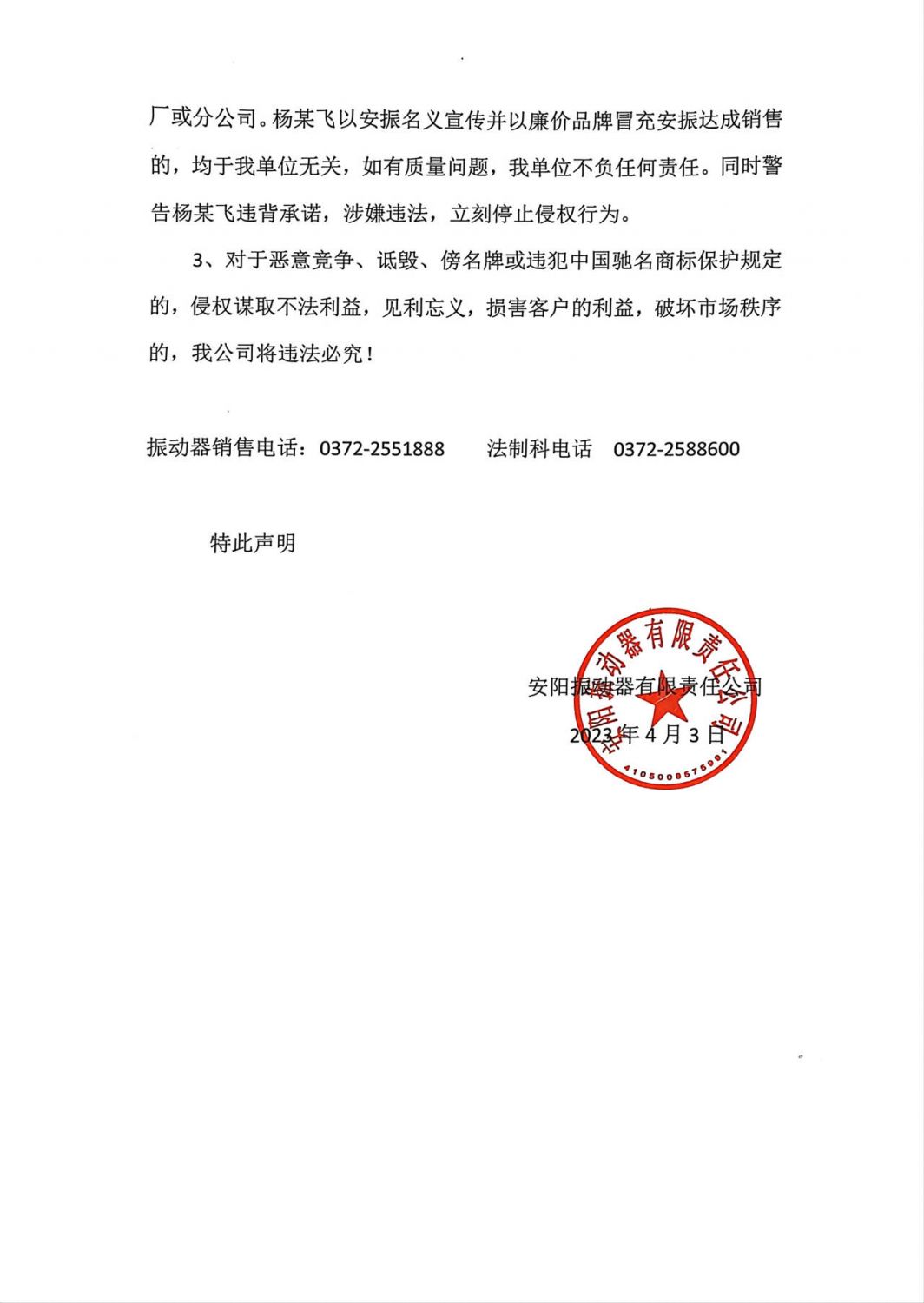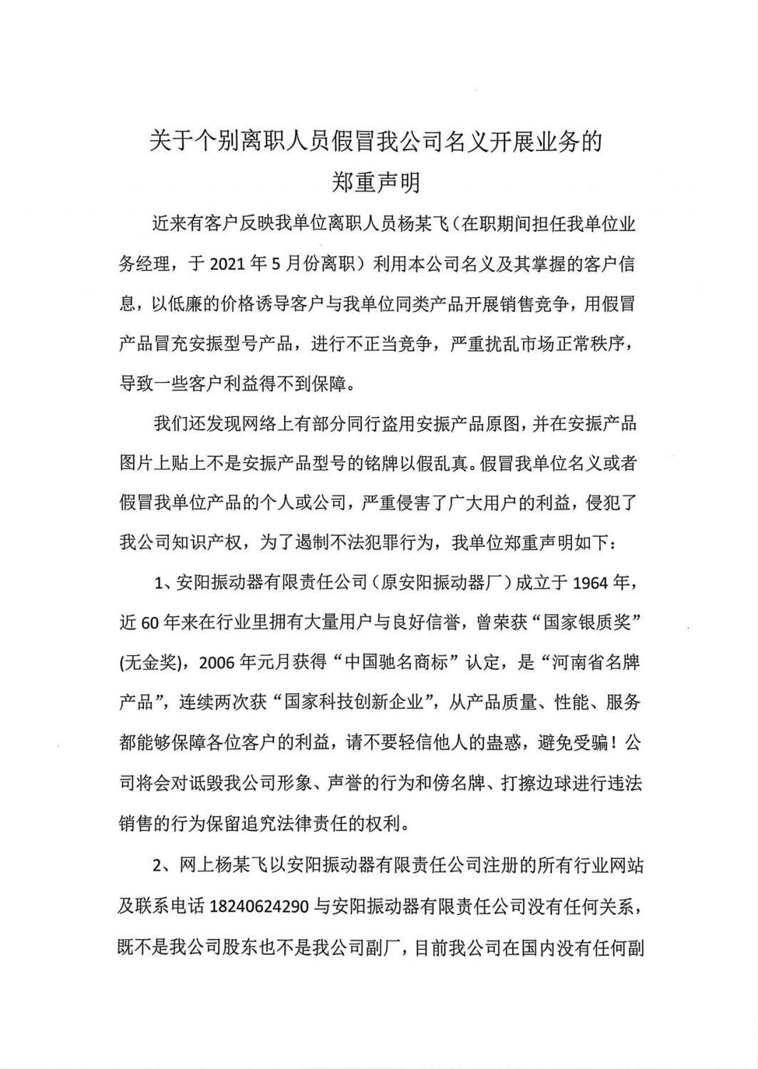 關(guān)于個(gè)別離職人員假冒我公司名義開展業(yè)務(wù)的鄭重聲明