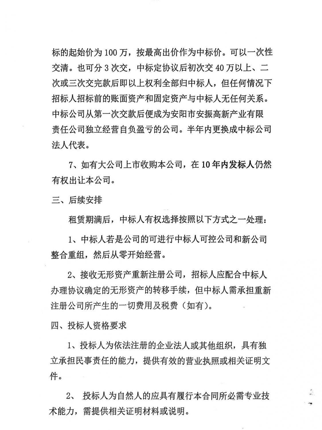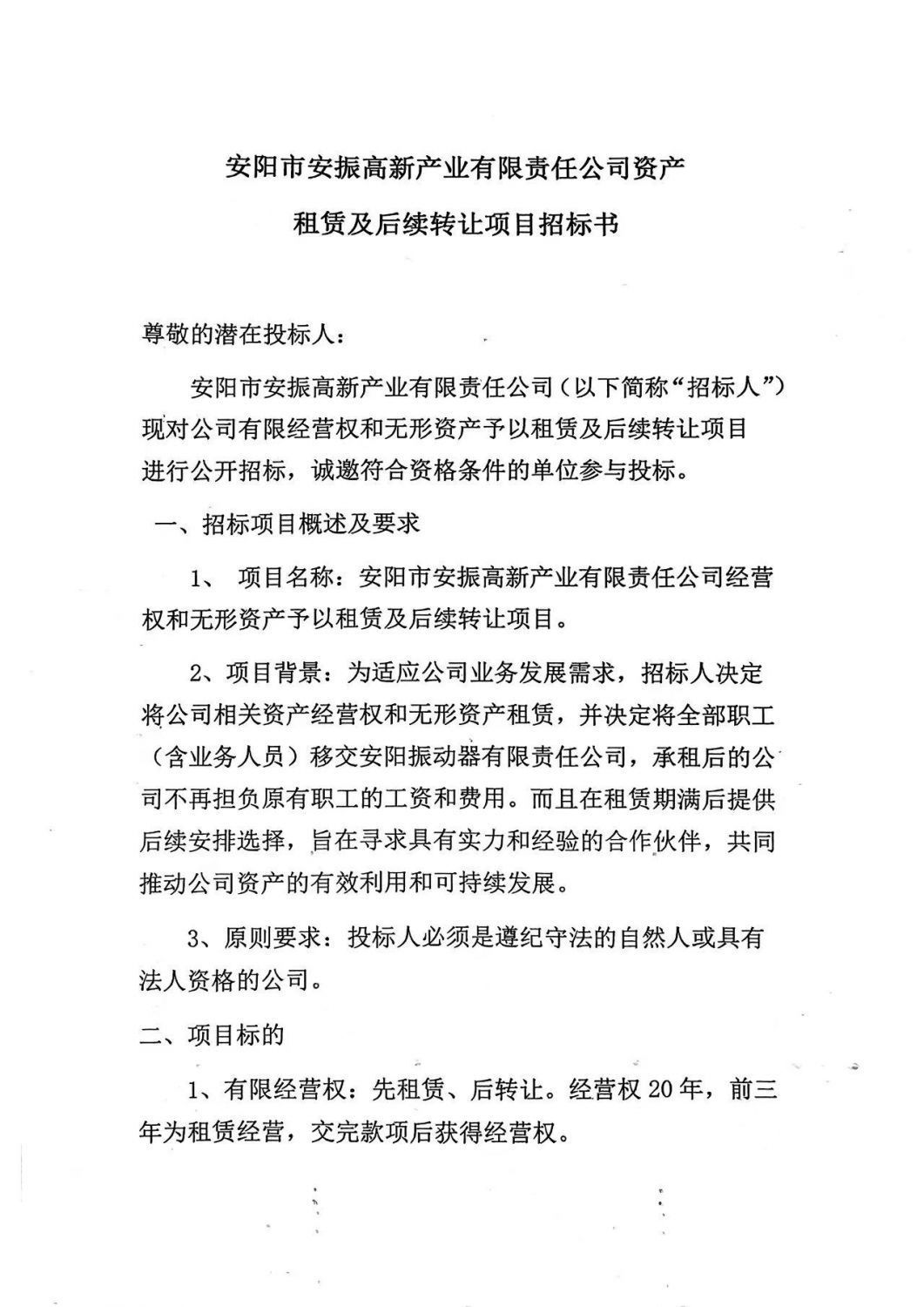 安陽(yáng)市安振高新產(chǎn)業(yè)有限責(zé)任公司資產(chǎn)租賃及后續(xù)轉(zhuǎn)讓項(xiàng)目招標(biāo)書(shū)